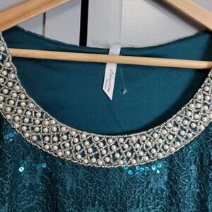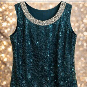 NY Collection Women's Sleeveless Sequined Tank Top – (Emerald/Teal color) XXL