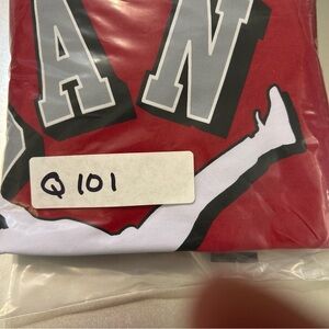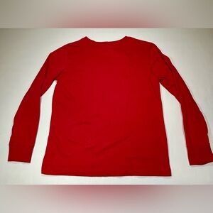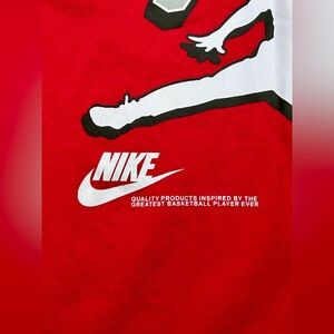 The product is a Michael Jordan Red T-Shirt in size L Youth, featuring the iconic Chicago Bulls logo. Made of a cotton blend fabric with a round neckline and long sleeves, this pullover shirt is suitable for various occasions including travel, activewear, parties, and casual wear. The shirt is machine washable and bears the signature design logo of Air Jordan, making it a stylish and trendy choice for young boys who are fans of basketball and the legendary player. Perfect for any season, this shirt is a must-have for any young Jordan enthusiast.