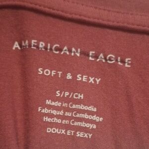 American Eagle Soft & Sexy Brick Red V-neck Shirt Women's Sz Small Petite