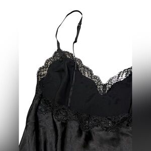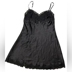 Victoria’s Secret black satin chemise or mini slip dress with lace trim Y2K