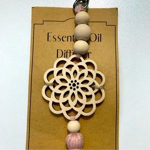 Essential Oil Mandala Keychain Diffuser with Wooden Beads and Pink Yarn Tassle