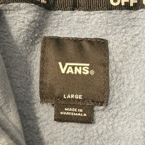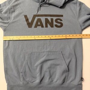 Casual Vans hoodie in slate blue. Features bold logo. Ideal for everyday wear.