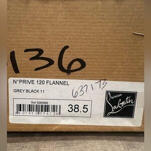 Grey flannel, authentic Christian Louboutins. Signature red sole.