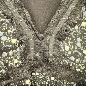 Zara sheer balloon sleeve floral and lace green/black dress large