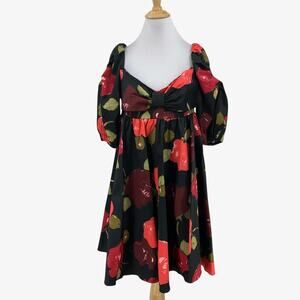 Kate Spade Dress Womens 12 Multi Just Rosy Beau Bow Sweetheart Neck Puff Sleeve