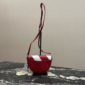Stylish and versatile, this Coach crossbody bag features a striking red and white design. Perfect for any occasion, it combines fashion with functionality. Adjustable strap.