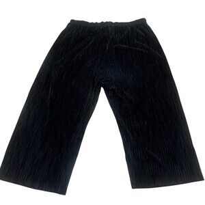 Silense Noise women’s dress pants in black, size L regular. Polyester pleated fabric with a lightweight feel. Wide-leg, relaxed fit with a mid rise. Pull-on style with an elastic waistband and solid color. Made in the Cook Islands. Pre-owned condition.
