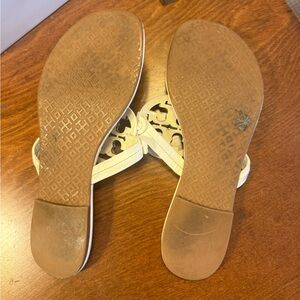 Tory Burch Optic White Leather Metal Miller Sandals Size 8.5 MSRP $200