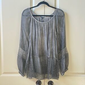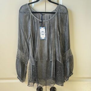 NWT Tempo Paris boho gray lace details tunic blouse size XL