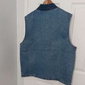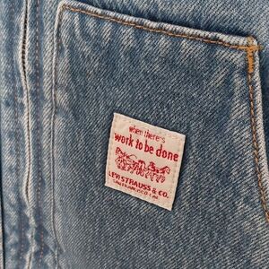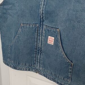 Classic Levi's denim vest. Features front zipper and pockets. Stylish and versatile.