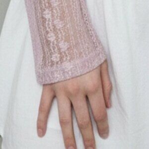 Gorgeous Juniors, Pink lace, V-neck, crop top, with bell-sleeves, and a cute bow at the top front. You can style this with jeans to go out casually ,or wear a black skirt, and go out to a formal engagement. This blouse is brand new with its tags.