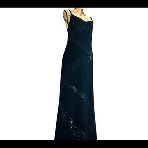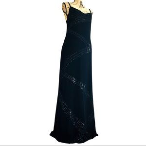 St. John Black Maxi Dress with Silver Accents
