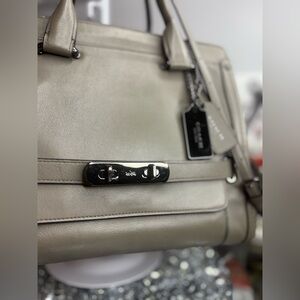Coach Swagger Frame Satchel in grey leather. The style number for this specific model in smooth leather is often F37182.