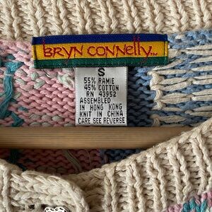 VINTAGE bryn connelly Cream Pastel Patchwork 3D Grandma Cardigan Sweater S