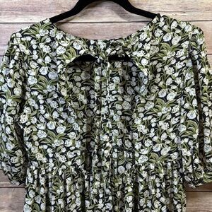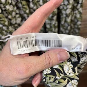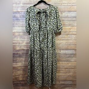 En Saison Jocelyn Floral Print Puff Sleeve Maxi Dress Green Black Size Small