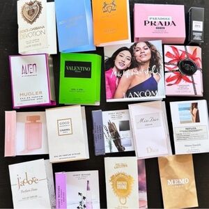 A diverse collection of perfume samples featuring various brands and scents. Perfect for exploring new fragrances.