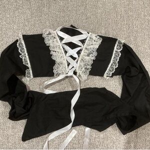 This is a handmade black and white lace up corset style belt. I ordered it custom made. It fits like a regular medium. Only worn once.