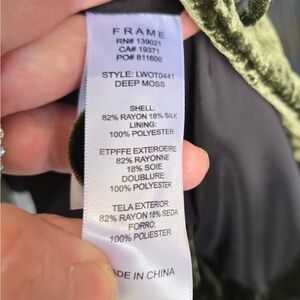 Frame Deep Moss Green Crushed Velvet Single Button Blazer Size 6. Pre-owned, gently worn. Smoke free and pet friendly.