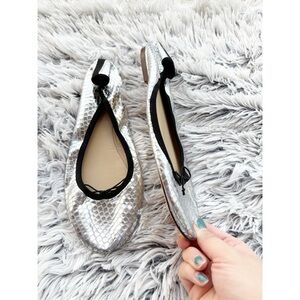 J.Crew Evie Mirrored Silver Textured Leather Flats