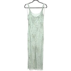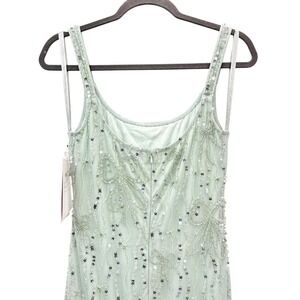 Mac Duggal NEW Seafoam Beaded Mesh Scoop Neck Fitted Gown With Bows