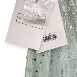 Mac Duggal NEW Seafoam Beaded Mesh Scoop Neck Fitted Gown With Bows $598 Size 10