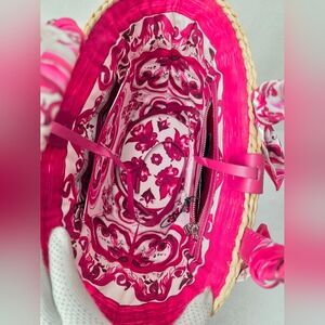 Auth Dolce&Gabbana KENDRA STRAW Shopper Floral Tote