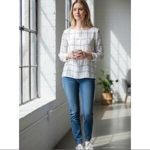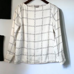 H&M Long Sleeve Cream Plaid Top