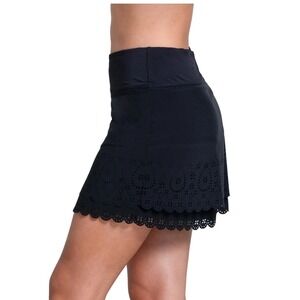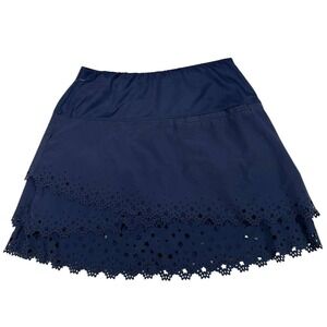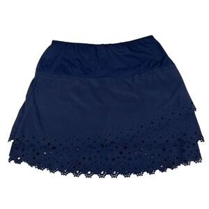 Lucky in Love Athletic Skort Star Cutout Hem Activewear Skirt Layered Navy XS