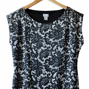 This chic mini dress features a classic black and white color scheme with a crew neck and a sleek sheath silhouette. Perfect for both work and casual occasions, its sleeveless design offers a modern and versatile look.