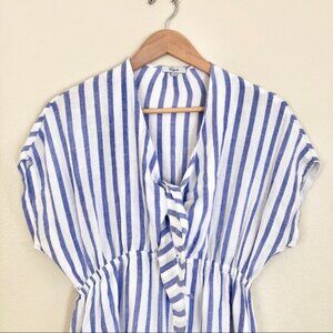 RAILS Striped Linen Tie Front Mini Dress in Blue White