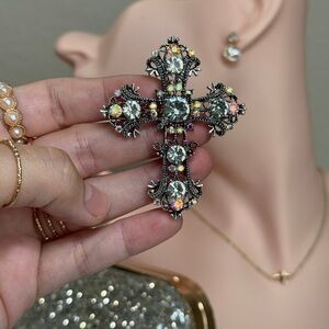 βοΈ Vintage Style Brooch-Pendant Jeweled Cross βοΈ