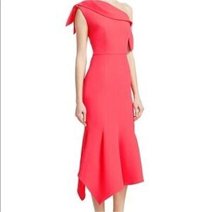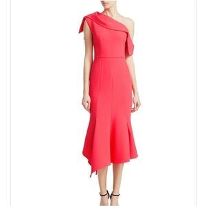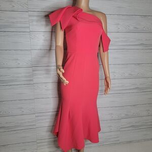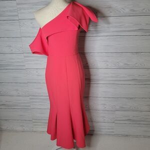 Cut with an elegant one-shoulder design and flatteringly tailored, this bright pink midi is a must-have summer occasion look. Love its flowy asymmetric flared hem and regal sash-like neckline paired with elegant accessories to really let it shine.