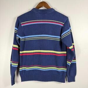 Oscar De La Renta Men's Size Medium Navy Blue with Stripes Heavy Knit Sweater
