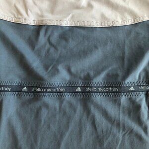 British fashion designer Stella McCartney made her mark with apparel and footwear that is elegant, understated and feminine. Her collaboration with adidas brings her signature design sense to athletes of every discipline as seen in this beautiful long-sleeved performance top. Like new, worn less than 5 times Fitted Stunning blue/grey colour combo Breathable, cooling adidas by Stella McCartney logo in front, along the rib cage and sleeves Armpit to armpit: 16.5" Shoulder to bottom: 24"