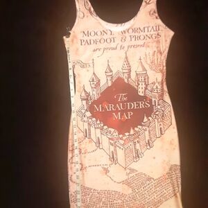 Long tank top with Marauder's Map design. Pre-loved but still in excellent condition! Both sides are exactly the same. Measurements included. Material is stretchy.