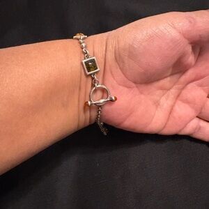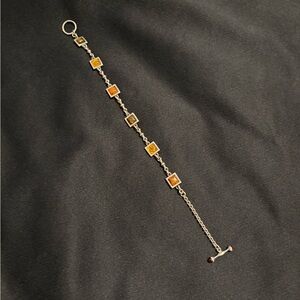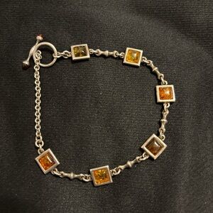 This elegant bracelet features stunning amber stones set in a sleek silver chain. Beautiful vintage sterling silver bracelet with extra extension. Excellent condition, not cleaned but not very dirty. It's a very nice vintage piece. It measures 9 inches in total. Please see photos for more details.