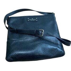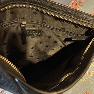 Chic and versatile, this Kate Spade black leather crossbody bag is perfect for any occasion. Crafted with attention to detail, it offers both style and functionality. No chips on metal just reflection from camera beautiful crossbody bag.