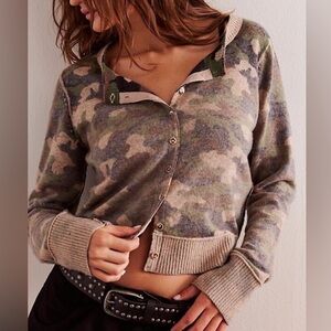 NWOT Free People Nocturnal Patterned Cardi in Army/Camo Combo