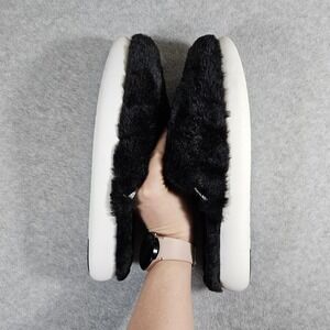 NWOB TOMS Women's Black Mujer Alpargata Mallow Fuzzy Mule Slippers Sz 9