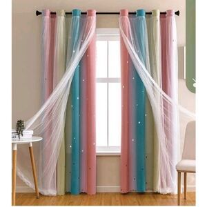 Curtains for Girls Bedroom Decor Rainbow Blackout Curtains ONE PANEL 52x63