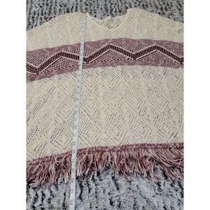 Altar'd State Cable Knit Cozy poncho Cream/Burgundy SZ S/M