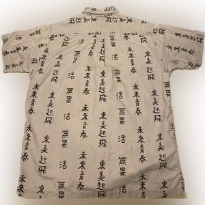 Tommy Hilfiger Grey/Cream Oriental Print Men's Medium Short Sleeve button down Shirt EUC 75% Cotton 25%Linen armpit to armpit is 23 inches :Posted 128