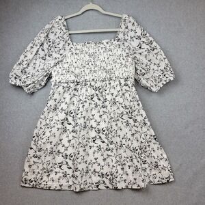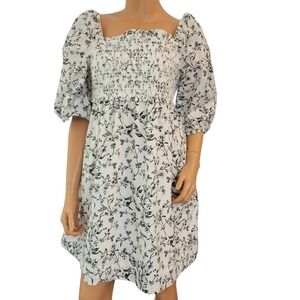 American Eagle Womens Smocked Dress Size Large Puff Sleeve Cottage Birds NWOT