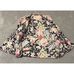 PAULA SWEET Flannel Fur Multi color Floral Cardigan Size S Fringe