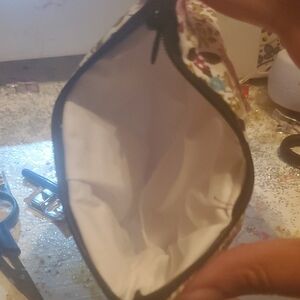 Elegant floral cosmetic bag featuring vibrant purple accents. Ideal for organizing your beauty essentials with style.