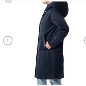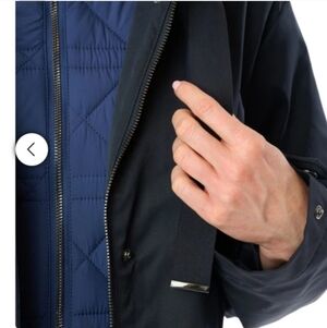 This is a great jacket. The bib with hood liner is removable and the jacket is soft and pliable. I live in lake effect country so the longer length and bib will perfect for keeping me warm while walking Annie the Siberian Husky.