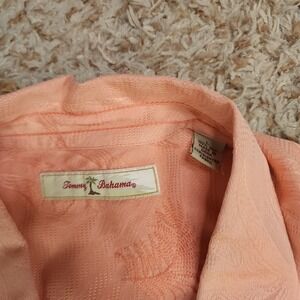 Tommy Bahama Pink Leaves Pattern Mens L Short Sleeve Button Up Silk Shirt