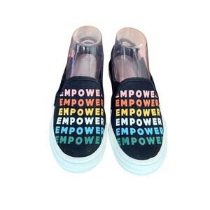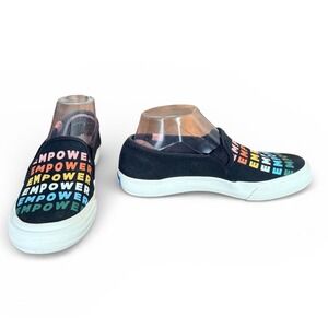 Keds Women Empower Slip On Sneakers Black Rainbow Text Print Size 7.5 statement