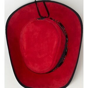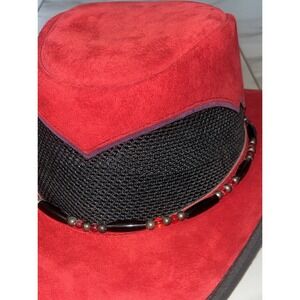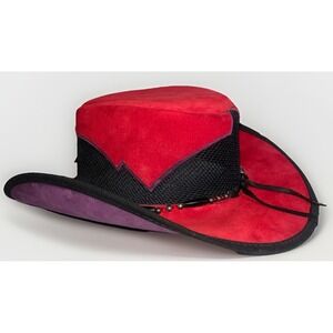 Vtg Head 'N Home Western Cowboy Hat Red Purple Suede Beaded Band USA Medium EUC
