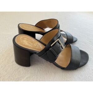 Lauren Ralph Lauren Womens FARIE II Heel Sandal Navy Stack Block Heel 7.5B Slide